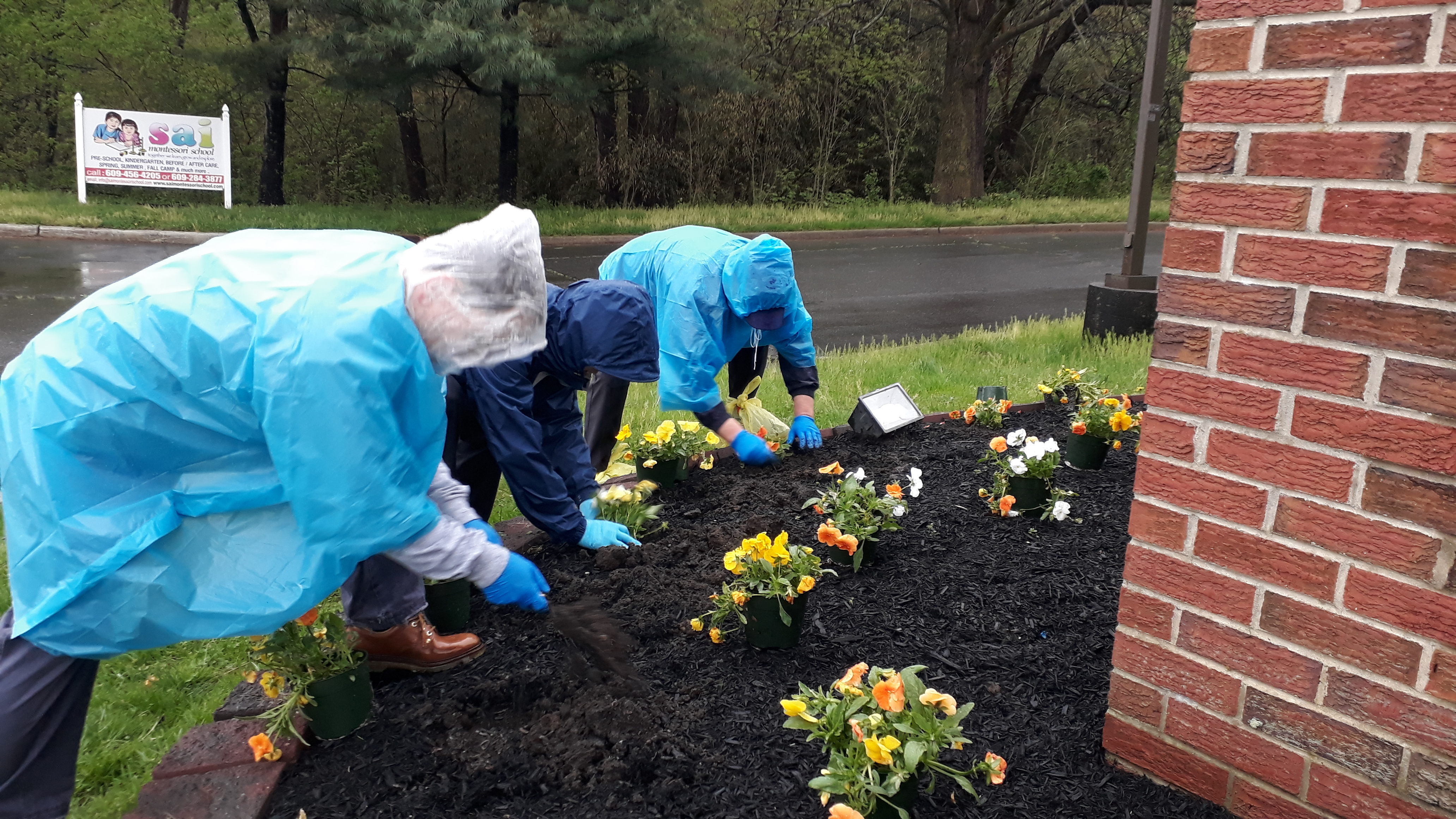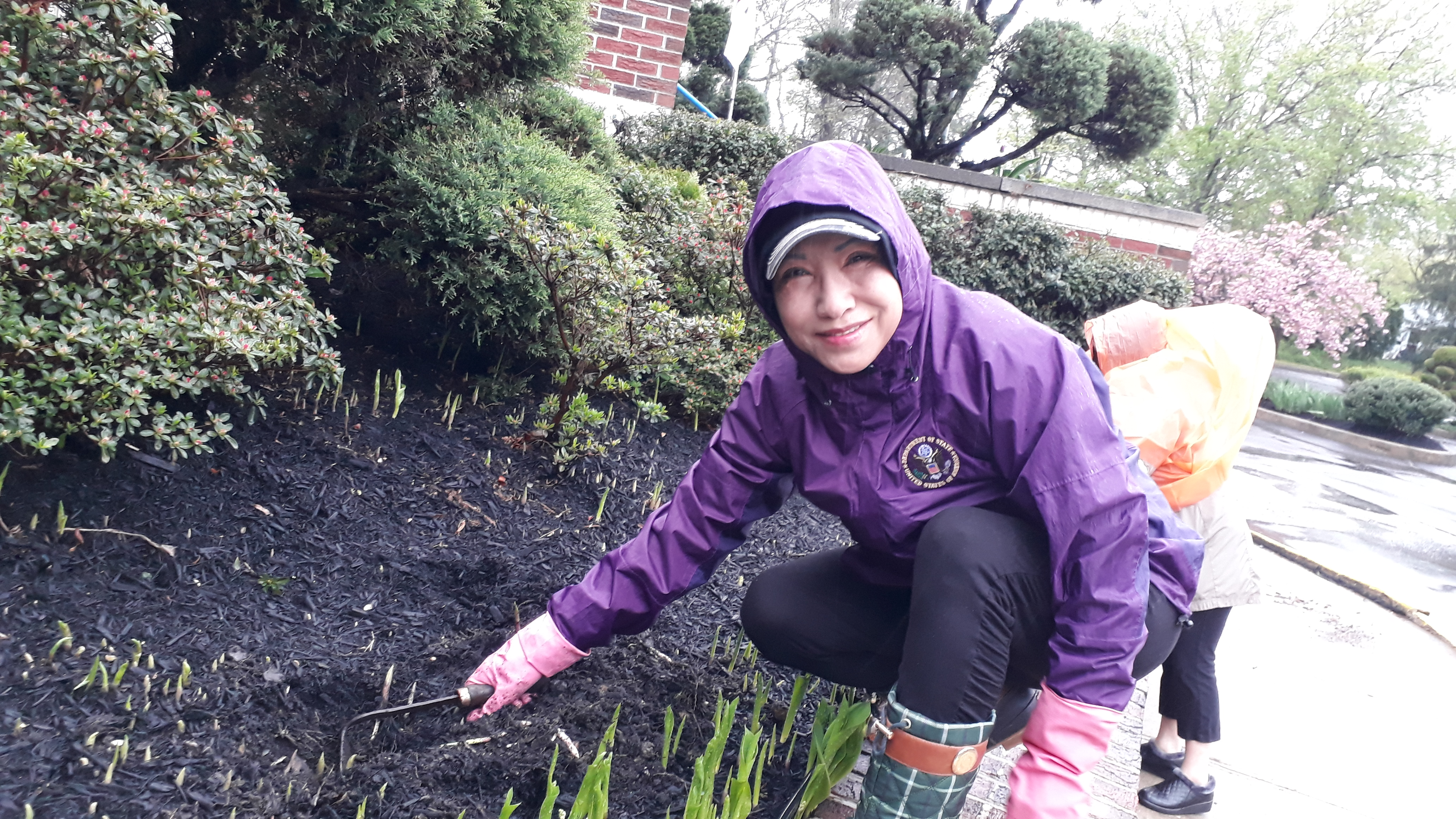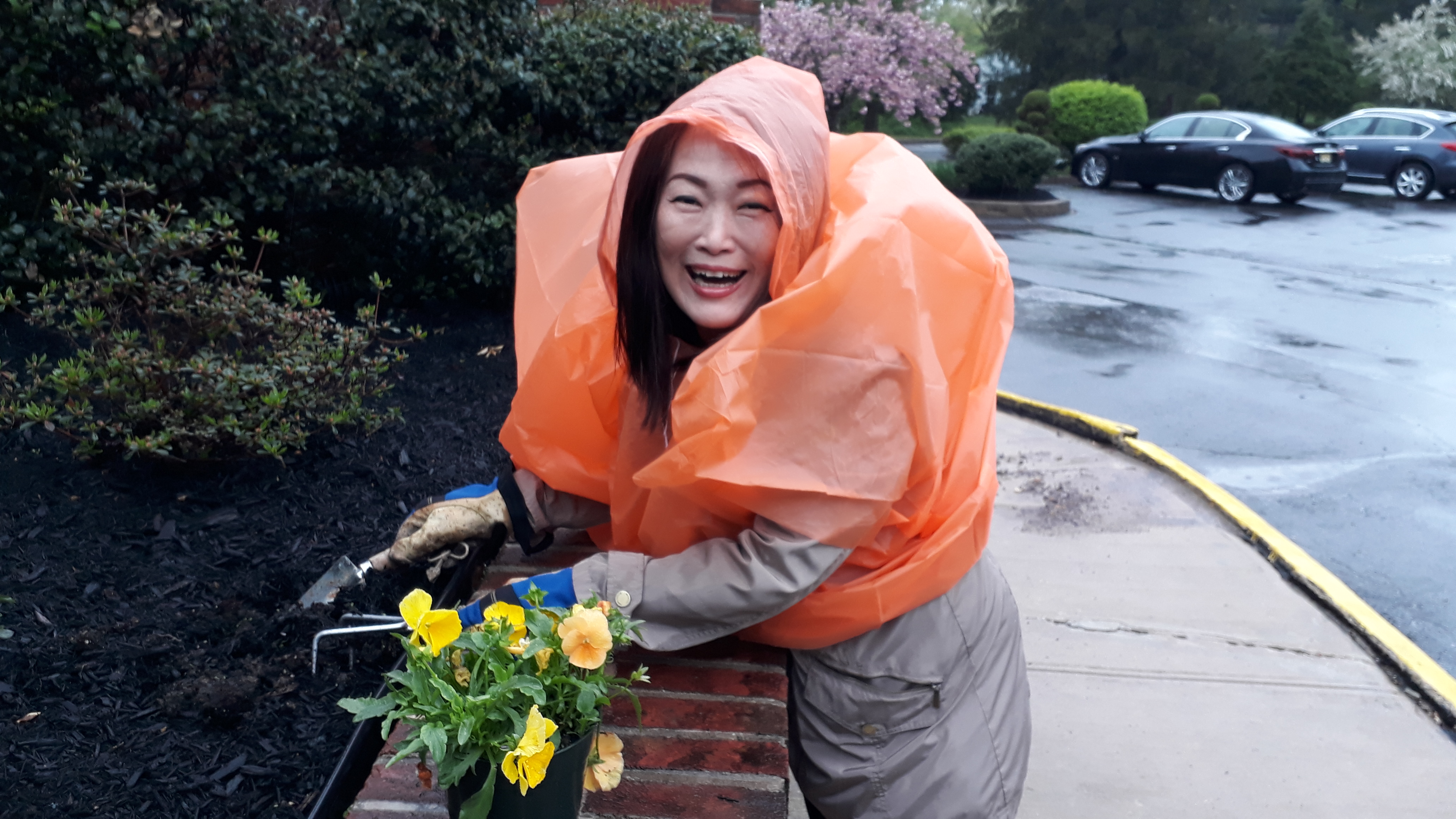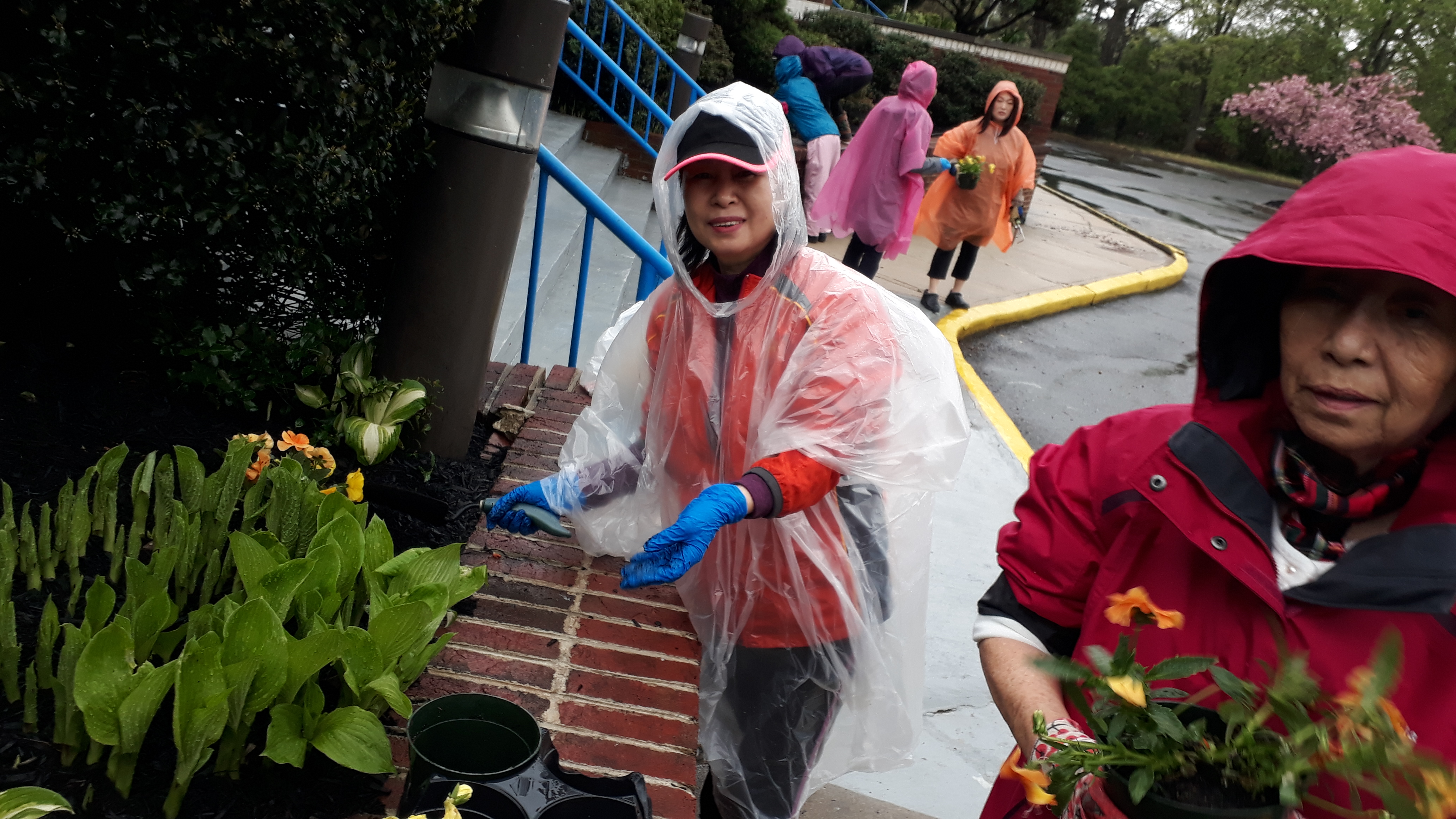 봄을 맞이하여 비오는 가운데서도 봄꽃을 심고 대나무 정리를 하였습니다.